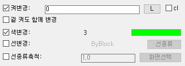 - 제외 켜 : 이 목록에 있는 켜를 가진 객체는 적용하지 않습니다. 켜는 "," 로 구분됩니다.