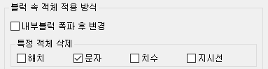 블럭 속에 들어 있는 치수,지시선은 기본적으로 변경이 되지만, 블럭 속에 들어 있지 않는 치수,지시선도 변경을 하고 싶다면 이 옵션을 선택합니다.