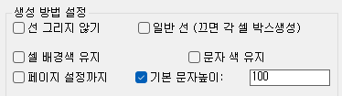 기본 문자높이 : 엑셀의 기본 문자크기를 캐드에서 인식하는 문자 높이 설정. 엑셀의 11포인트를 기준으로 합니다.