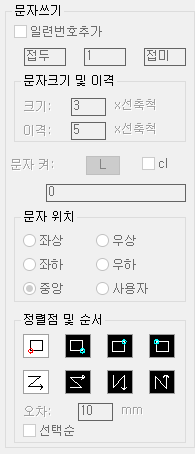 선택된 객체에 일련 번호 형식 또는 특정 문자를 기입할 수 있습니다.