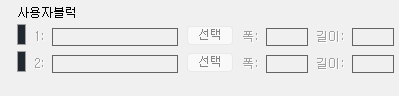 이 경우 해당 블럭의 가로, 세로 크기를 미리 입력해 놓아야 합니다.