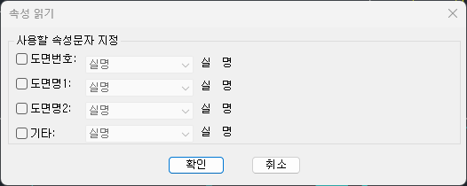 ** 만약 도곽블럭은 일반블럭이고, 표제란이 별도의 속성블럭이라면, 속성블럭으로 하지 않고 이 옵션으로 할 경우 문자를 인식할 수 있습니다.