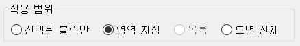 "도면전체"를 선택할 경우, 이 옵션은 활성화되지 않습니다.