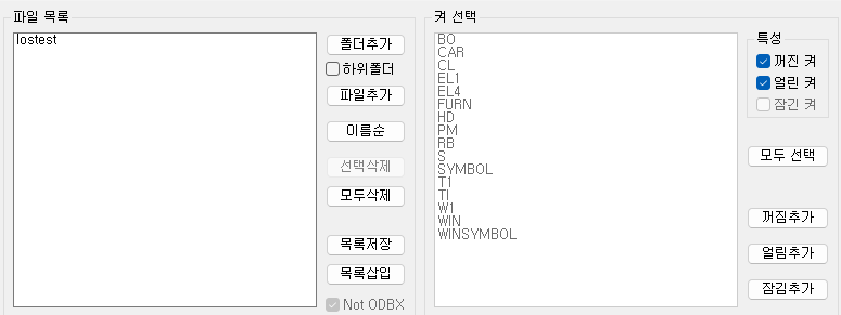 [현재파일]에 적용을 하면 꺼지거나, 얼려진 켜를 선택해서 활성화시키는 기능입니다.