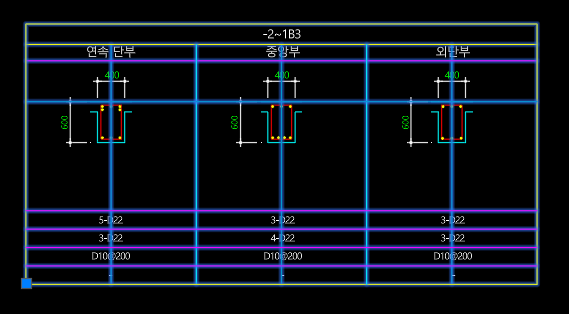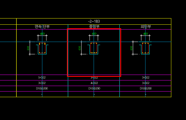 4. 중앙부 보의 치수영역 지정 (이 영역 안에 있는 치수를 인식하여 읽음)