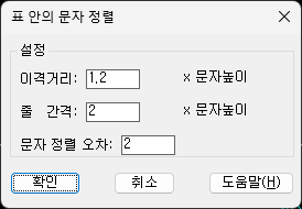 설정에 들어가면 띄울 거리와 줄간격, 그리고 문자 정렬 오차 범위를 정할 수 있습니다.